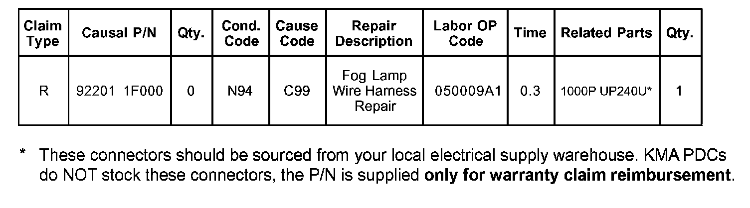 2005 SPORTAGE EQUIPPED WITH FOG LIGHTS - CIRCUIT MODIFICATION