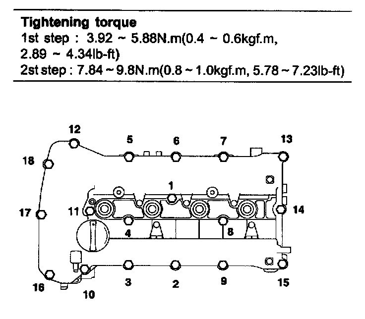 Tightening torque 9.8 - 11.76 Nm (1.0 - 1.2 kgf.m, 7.23 - 8.67 ft. lbs.)