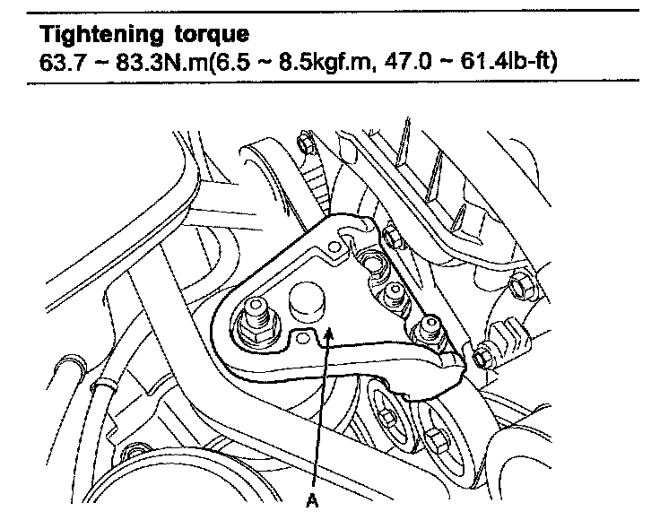 Rotate auto tensioner arm in the counter -> clockwise moving auto tensioner pulley bolt with wrench. After putting belt on auto tensioner pulley, release the auto tensioner pulley slowly.