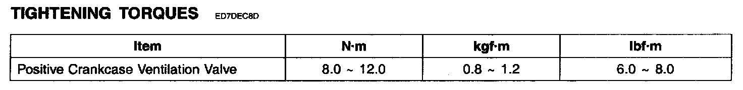 Positive Crankcase Ventilation Valve