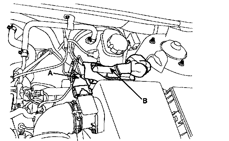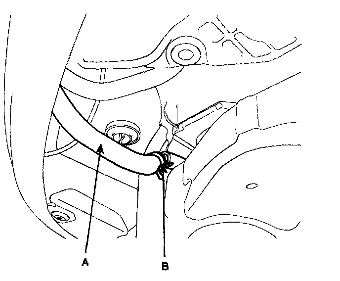 8. Inserting the power steering return hose (A), fix it with a clamp (B).
