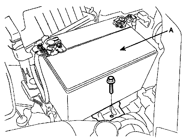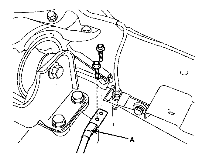 20. Install the ground circuit line (A) from the transaxle.