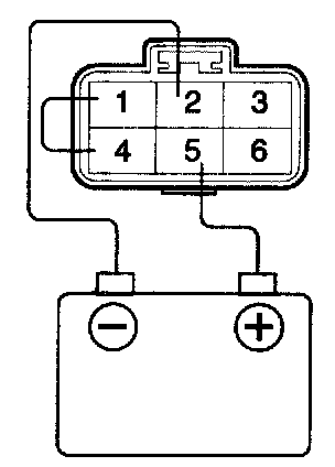 4. Connect the positive (+) lead from the battery to terminal 2 and the negative (-) lead to terminal 5.