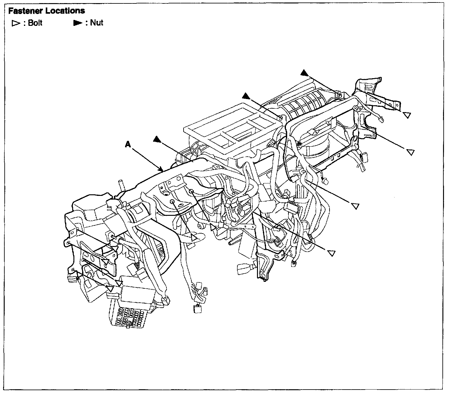- Before tightening the bolts, make sure the crash pad wire harnesses are not pinched.