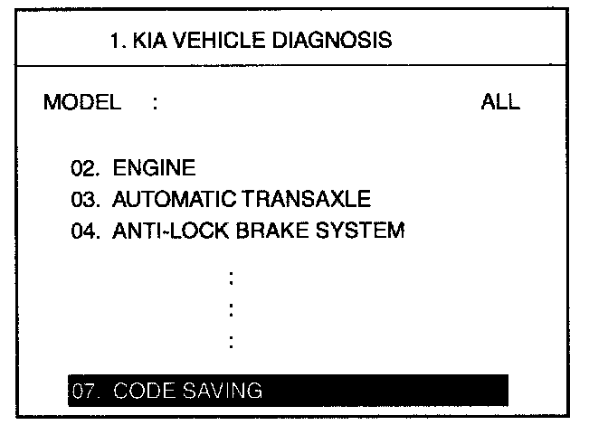 3. After selecting "CODE SAVING" menu, push "ENTER key, then the screen will be shown.