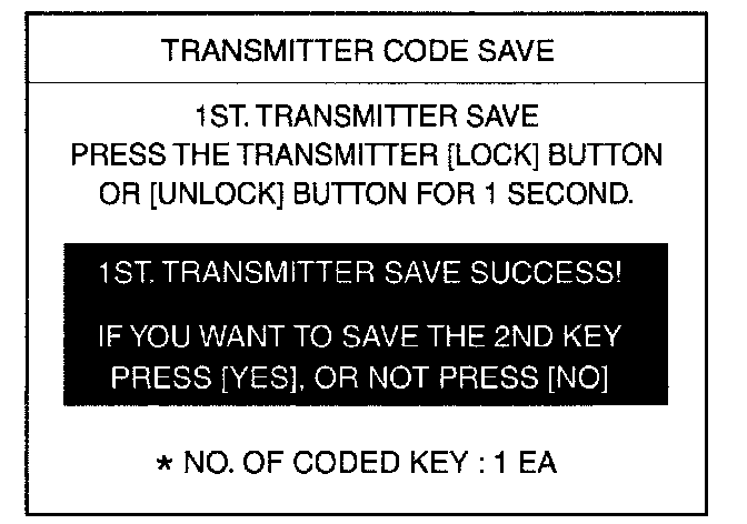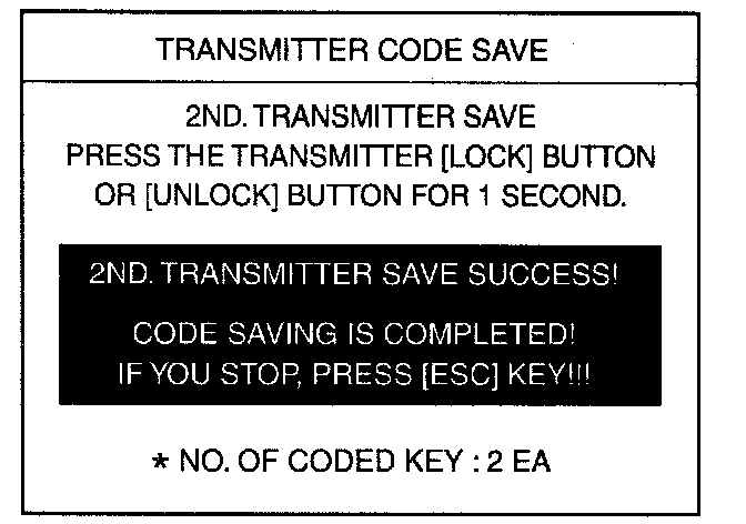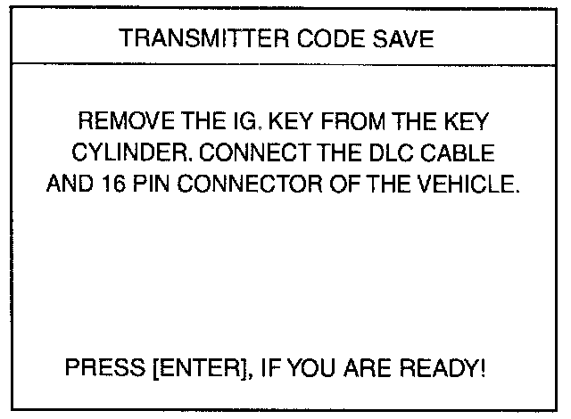 4. After removing the ignition key from key cylinder, push "ENTER key to proceed to the next mode for code saving. Follow steps 1 to 4 and then code saving is completed.