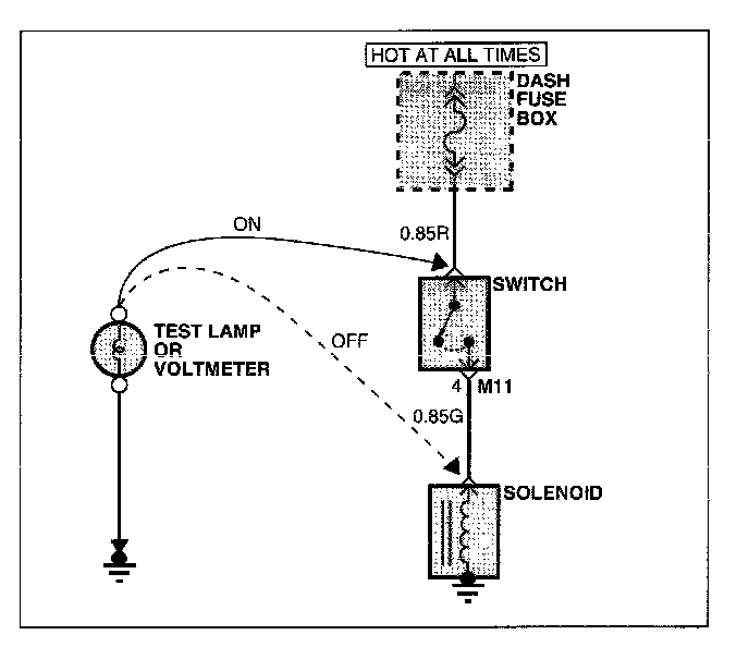 Voltage in these circuits should be tested only with a 10-megaohm or higher impedance DVOM. Never use a test lamp on circuits that contain solid state modules. Damage to the modules may result.