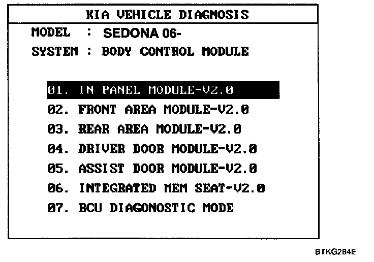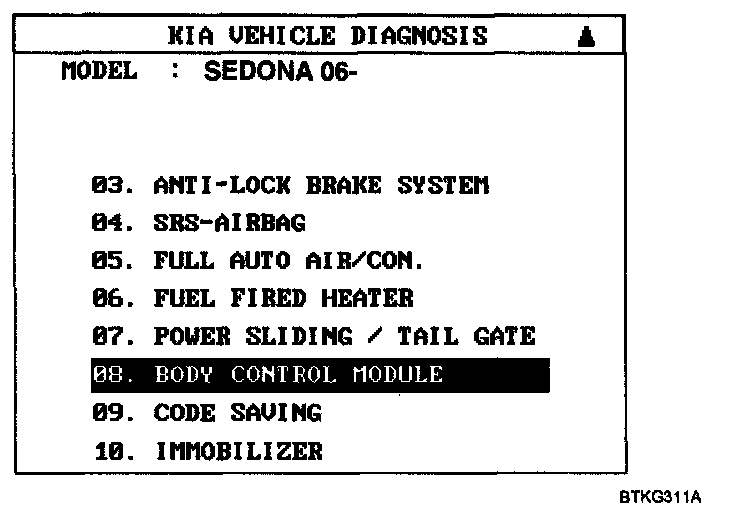 2. To check the Input Value of door lock switch, select option "09. BODY CONTROL MODULE".