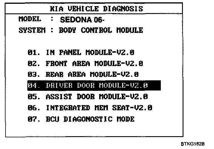 3. Select option "04. DRIVER DOOR MODULE".