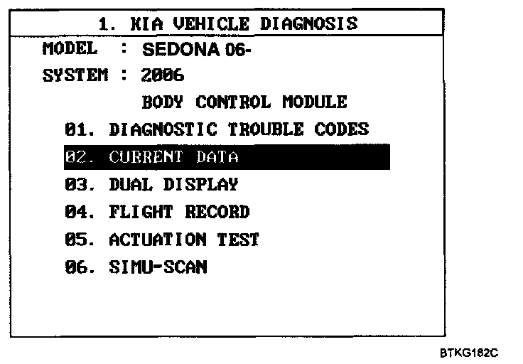 4. Select option "02. CURRENT DATA".