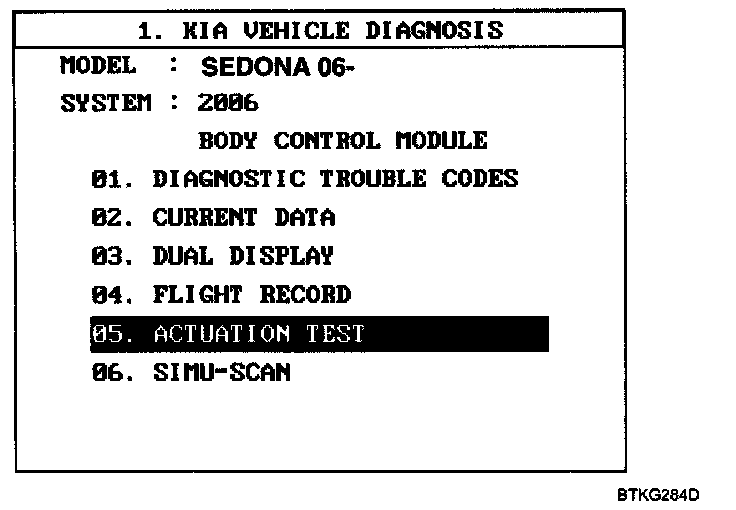 5. To check the Input Valve of door lock switch in force mode, select option "05 ACTUATION TEST".