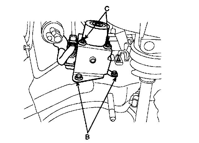 5. Remove the two HECU mounting nuts (C) and washer, and then remove the bracket.