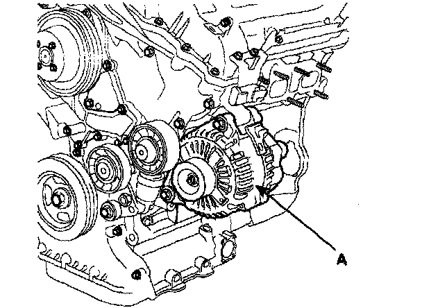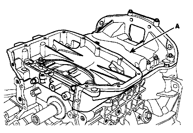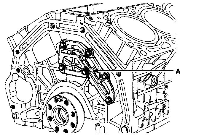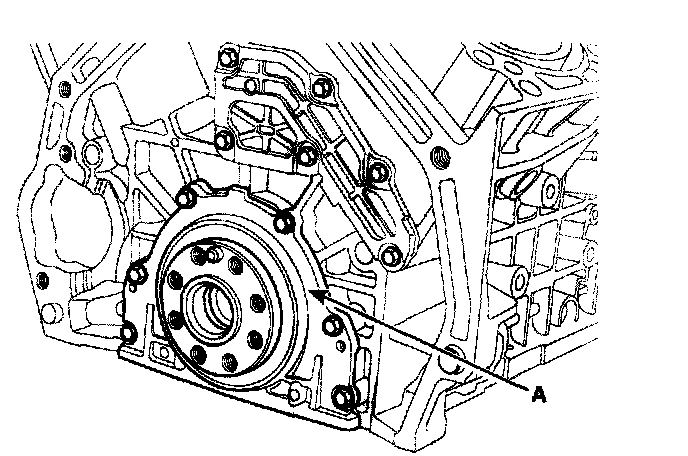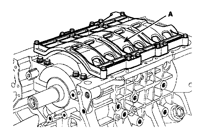 12. Lift the crankshaft (A) out of engine, being careful not to damage journals.