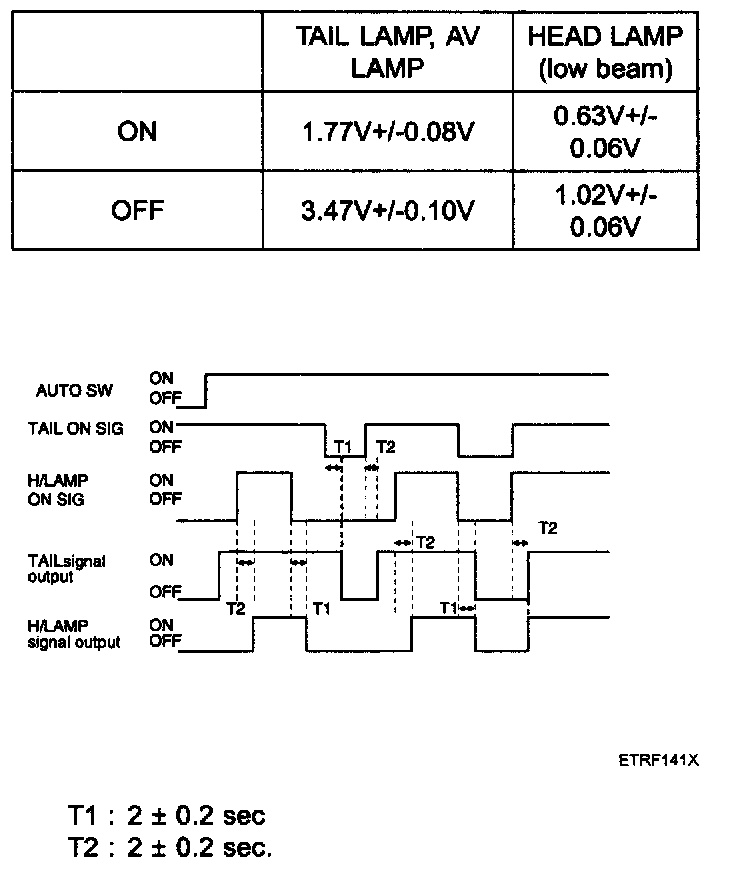 While operating the auto light switch, check if the operations are normal as shown in the timing chart.