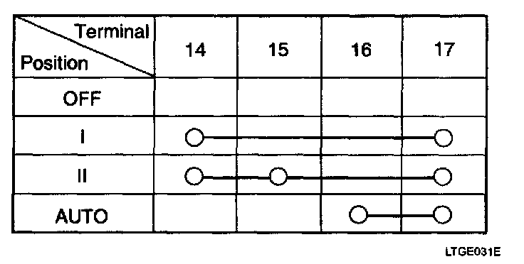 Check for continuity between terminal and terminal while operating the auto light switch.