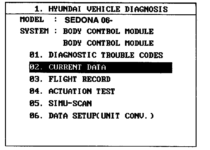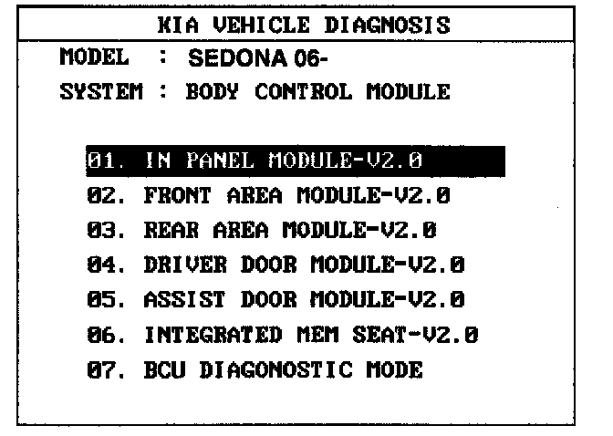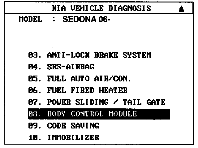 3. If diagnosis is required on the multi function switch, select "SEDONA" and "BCM"