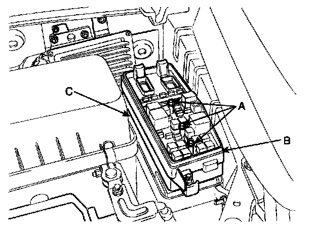 4. Remove FAM mounting bolts (3EA) (A) and remove the FAM (B) from splash shield (C).