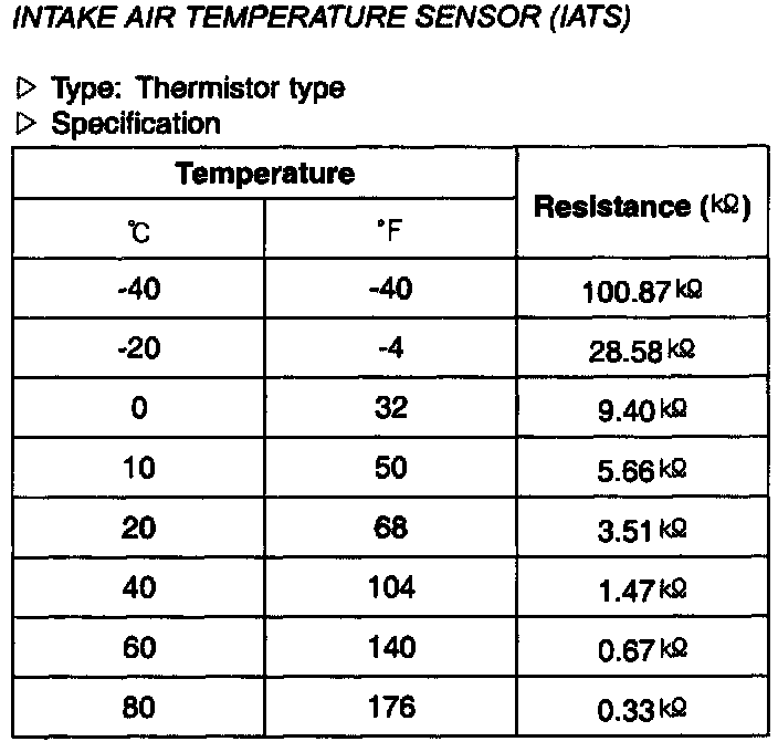 Air Temperature Sensor ( Ambient / Intake ): Specifications