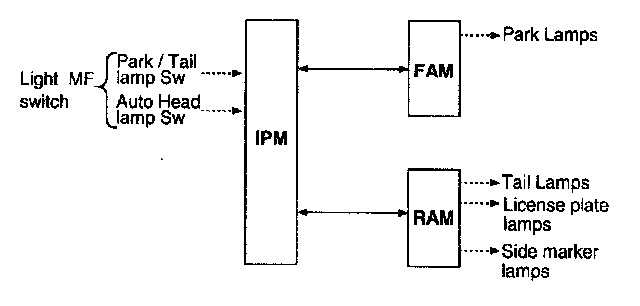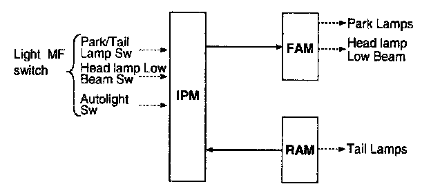 The MF "high beam" and "flash to pass" switches do not influence the management of the Panel Lights and Trip Computer illumination, Rear Blower illumination and Rear Monitor illumination.
