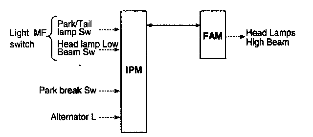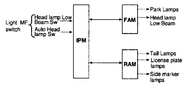 1. If the head lamps low beam are turned on by head lamps low beam switch or by auto light switch when the ignition switch is turned from the ON to ACC or OFF positions.