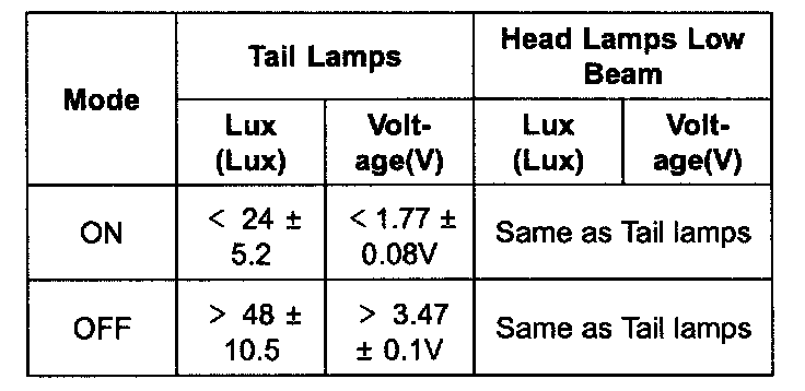 1. The Auto light function is active when the Head lamp switch is positioned to 'Auto' and the Key is in RUN position.