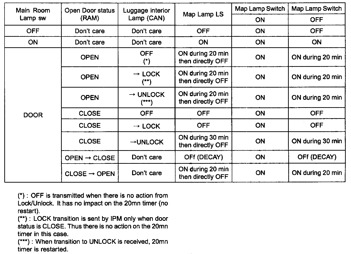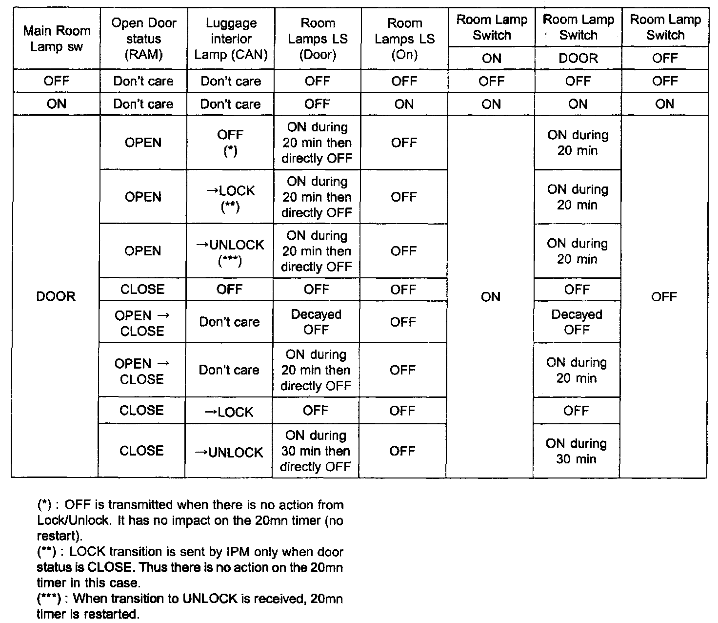 - For the room lamps, when the 20 m timer is running and any of the side doors is opened the timer is restarted.