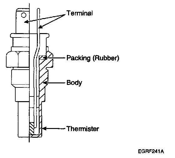 Engine Coolant Temperature Sensor (ECTS) is located in the engine coolant passage of the cylinder head for detecting the engine coolant temperature. The ECTS uses a thermistor whose resistance changes with the temperature. The electrical resistance of the ECTS decreases as the temperature increases, and increases as the temperature decreases. The reference 5 V in the PCM is supplied to the ECTS via a resistor in the PCM. That is, the resistor in the PCM and the thermistor in the ECTS are connected in series. When the resistance value of the thermistor in the ECTS changes according to the engine coolant temperature, the output voltage also changes. During cold engine operation the PCM increases the fuel injection duration and controls the ignition timing using the information of engine coolant temperature to avoid engine stalling and improve DRIVEABILITY.