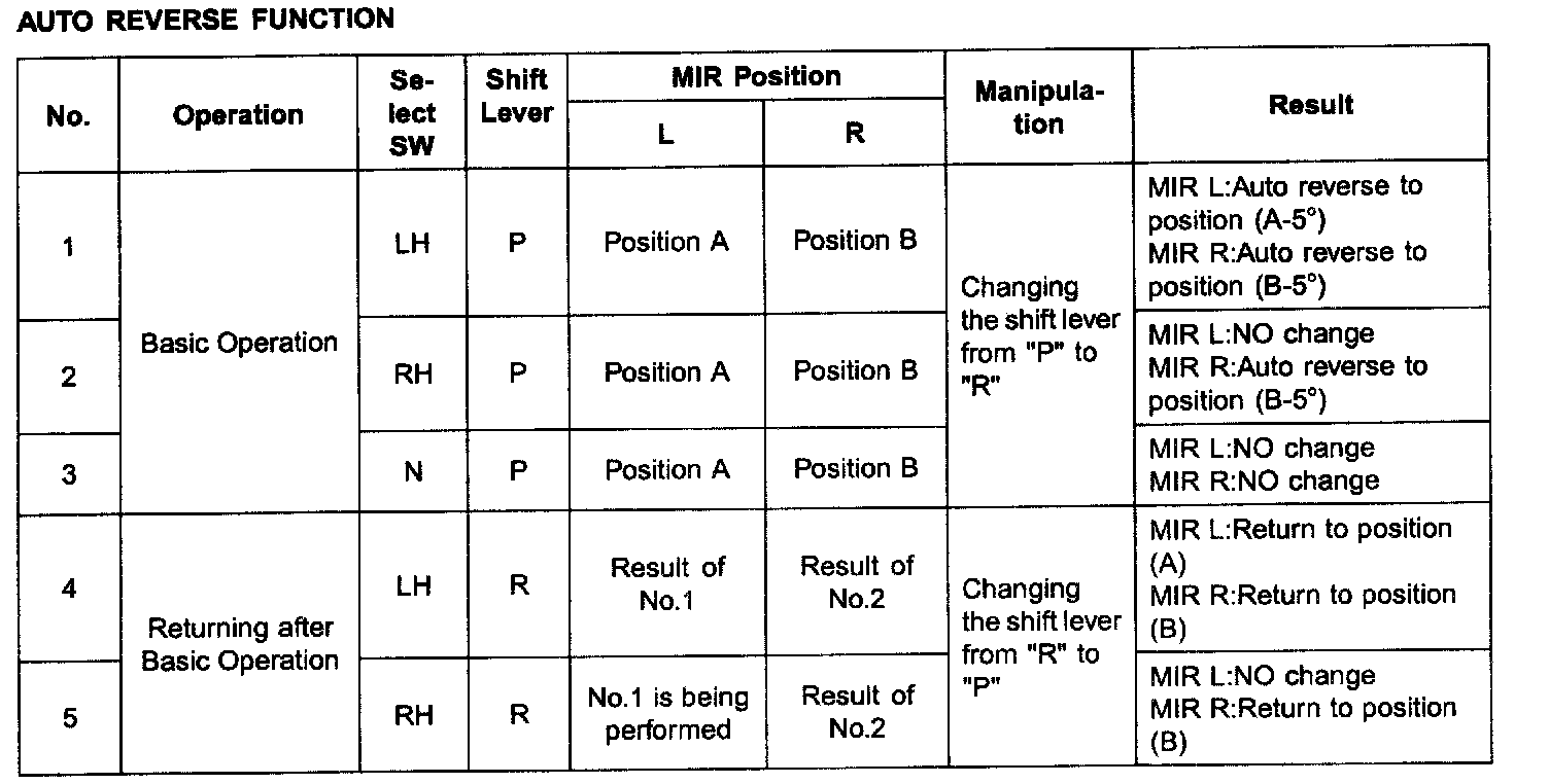 5. Out side mirror AUTO reverse operation