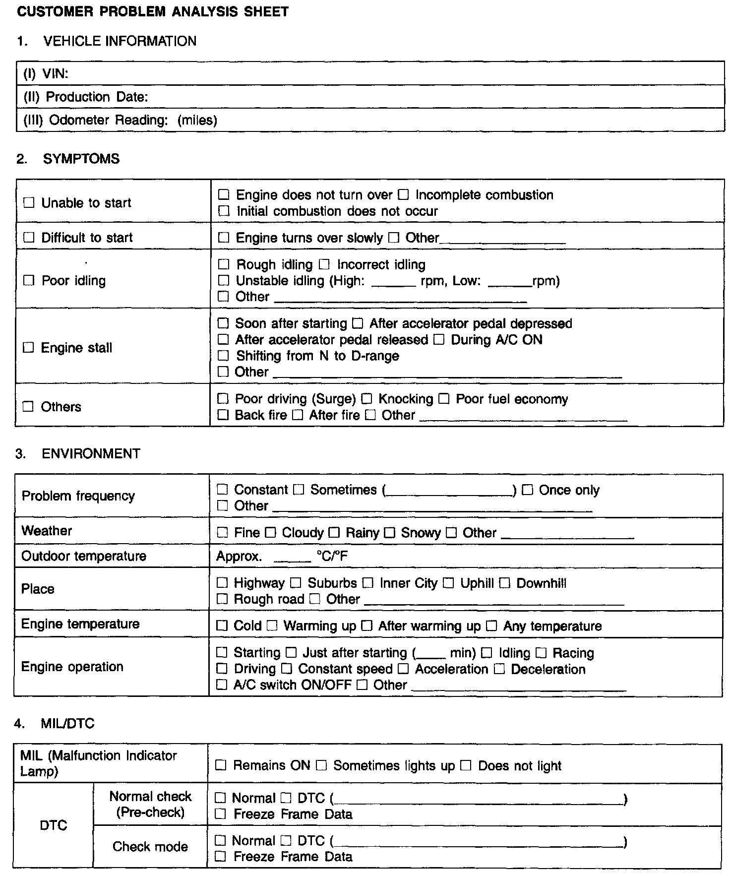 Customer Problem Analysis Sheet