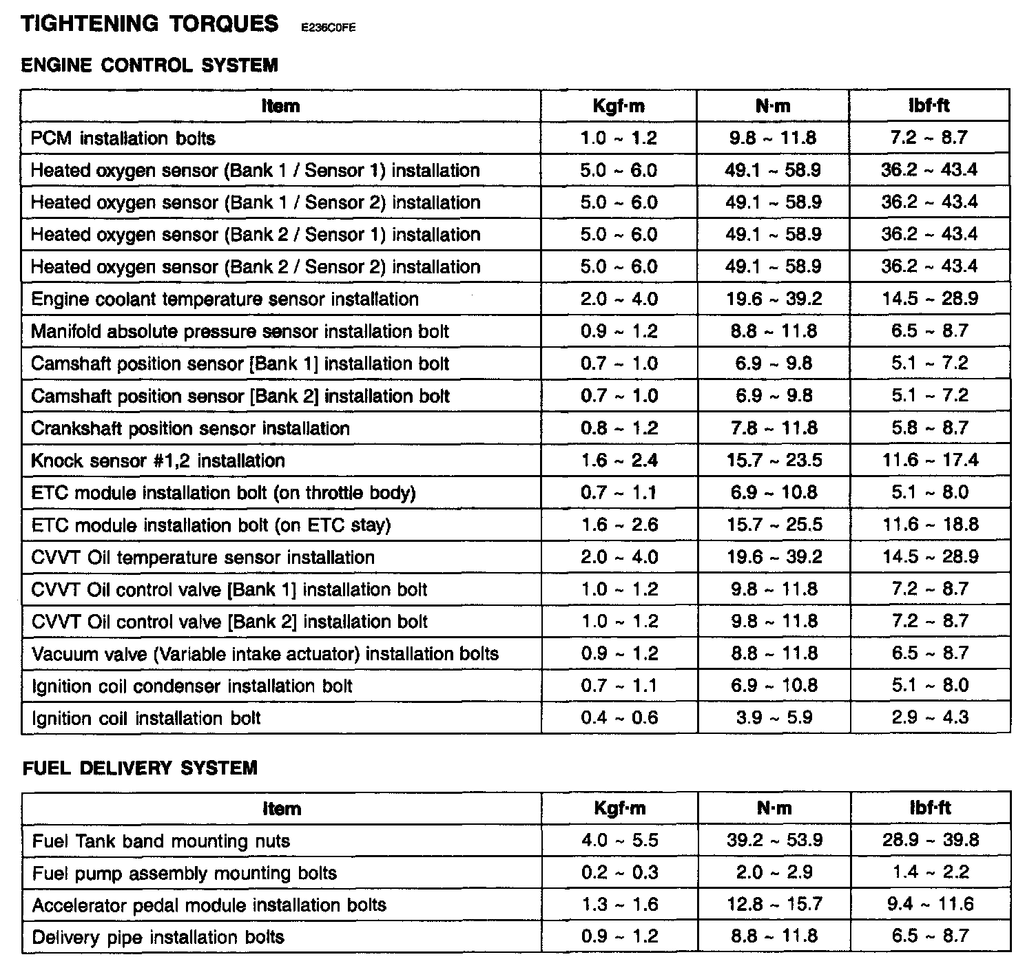 Tightening Torques: