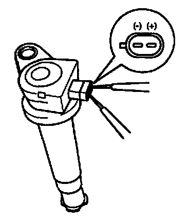 Measure the primary coil resistance between terminals (+) and (-).