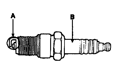 4. Inspect the electrodes (A) and ceramic insulator (B).