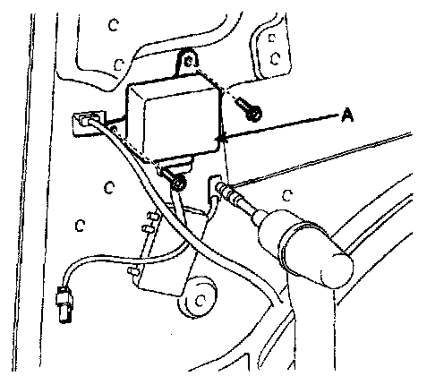 Loosen the mounting bolts and remove the back warning control unit (A) from the quarter panel.