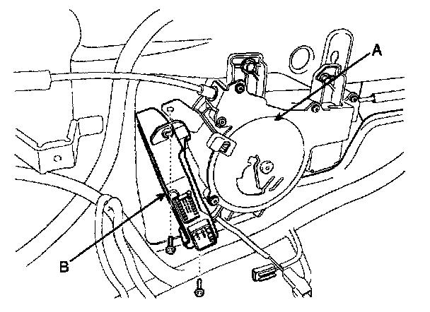 3. Remove the connectors and mounting bolts (2EA) from the power sliding door unit(A). And then remove the power sliding door control module (B).