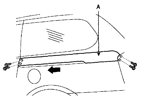 7. Remove the roller hinge bracket assembly (A).