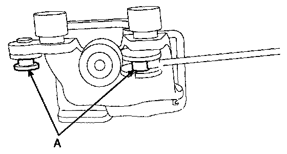 8. Remove the front cable (A) from center roller hinge (B).