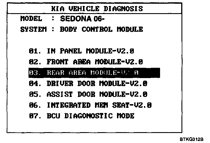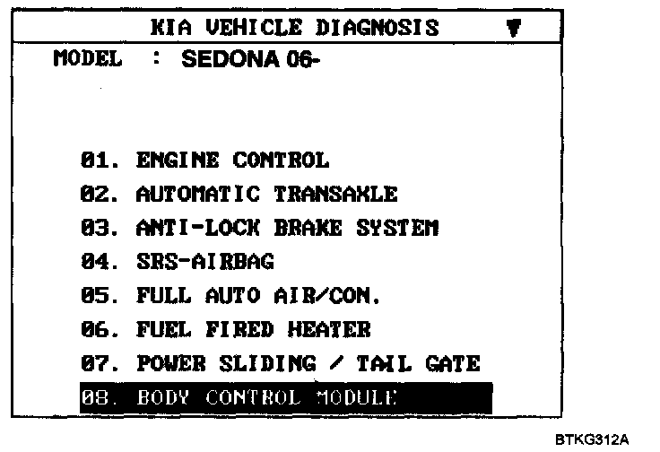 2. Select a vehicle type and "BODY CONTROL MODULE (BCM)".