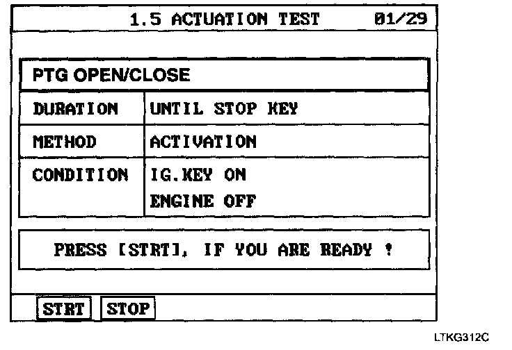 4. Select the "ACTUATION TEST" and "PTG OPEN/CLOSE" to operate tailgate motor.