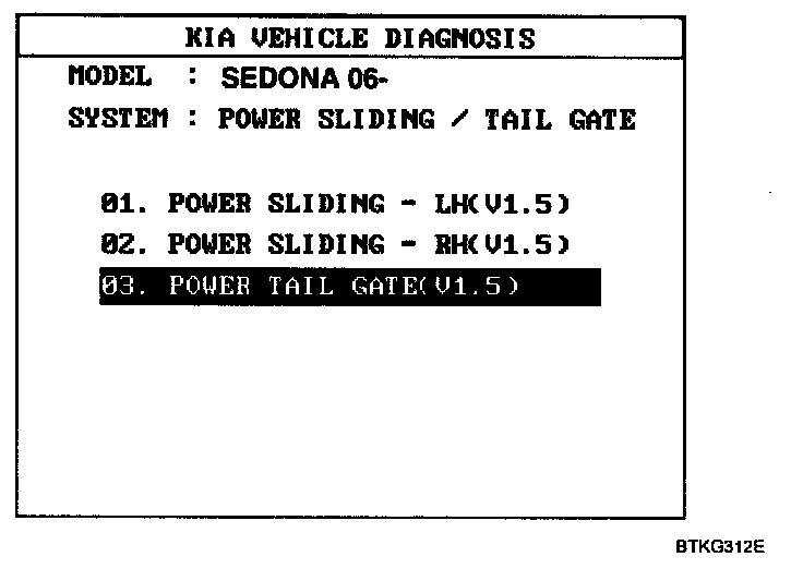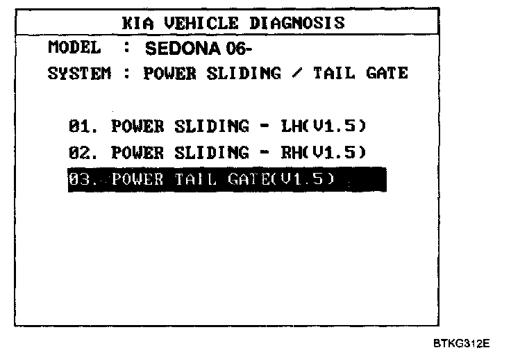 2. To check the clutch operation, select a vehicle type and "POWER SLIDING/TAILGATE menu.