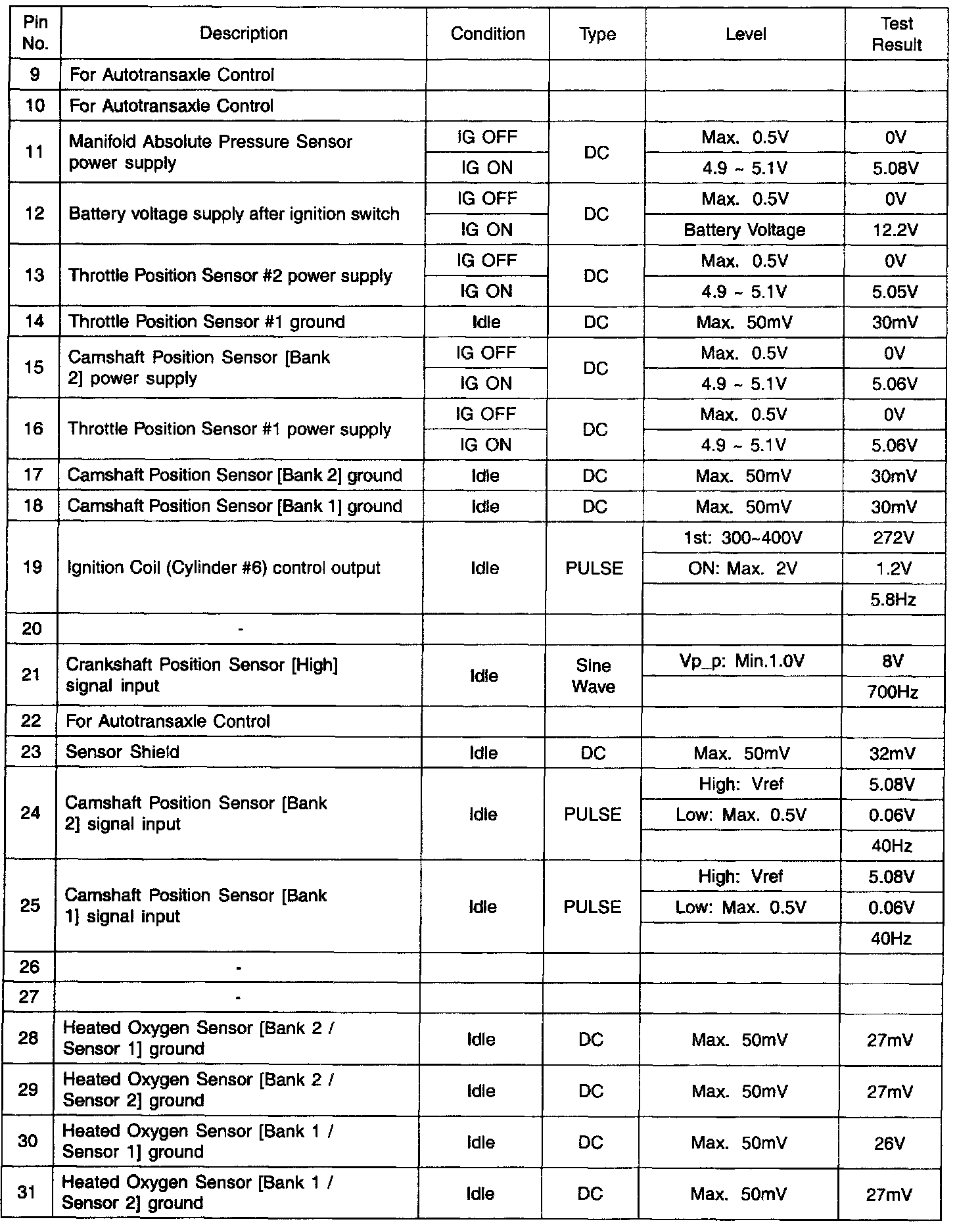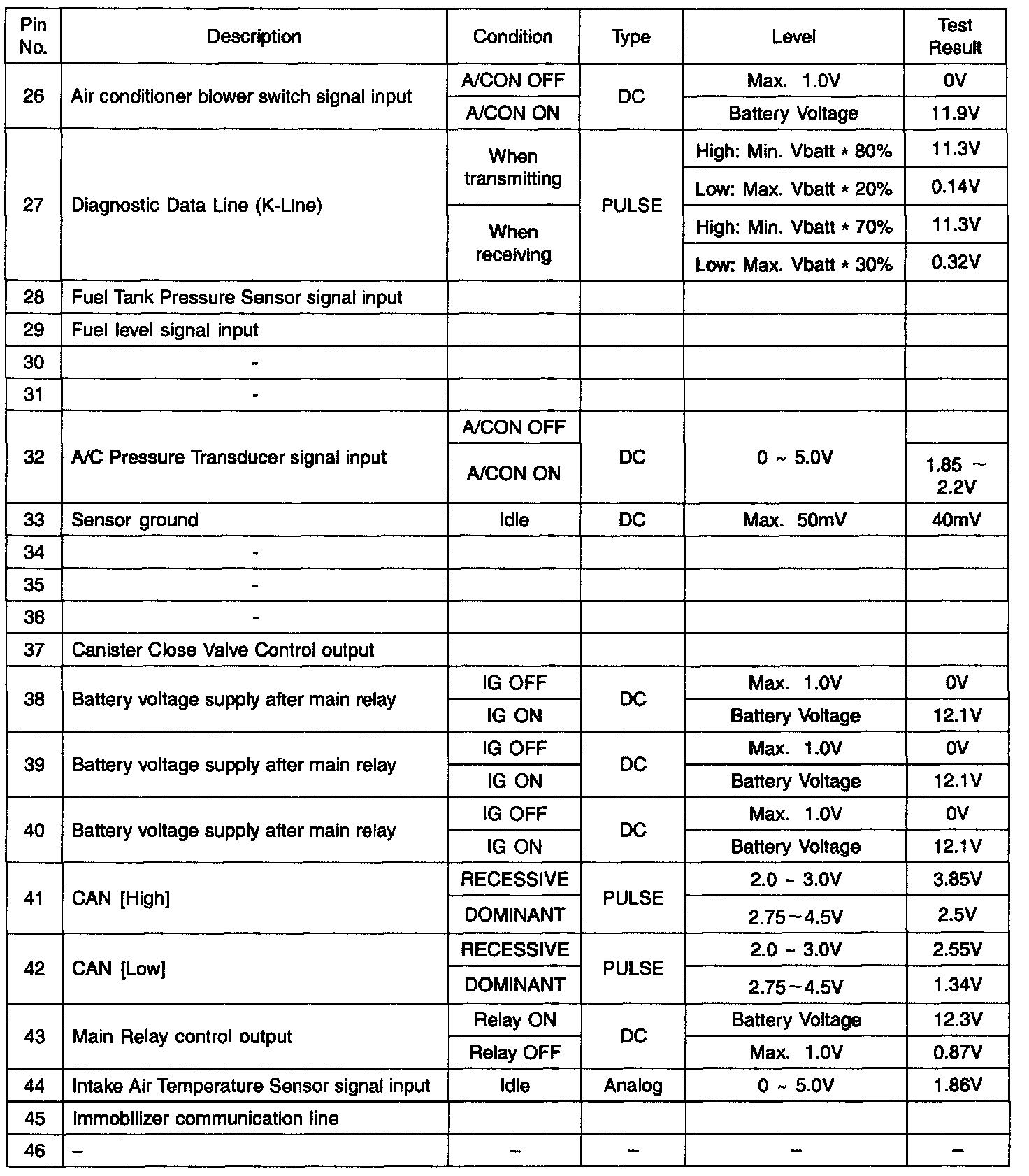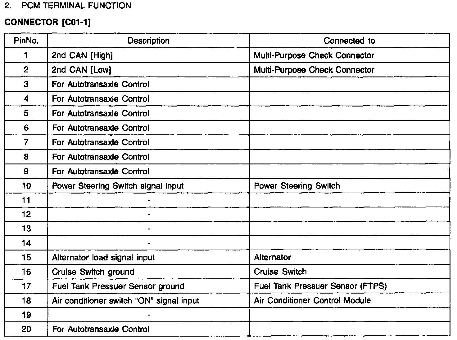 PCM Terminal Input/Output Signal - Connector (C01-1)