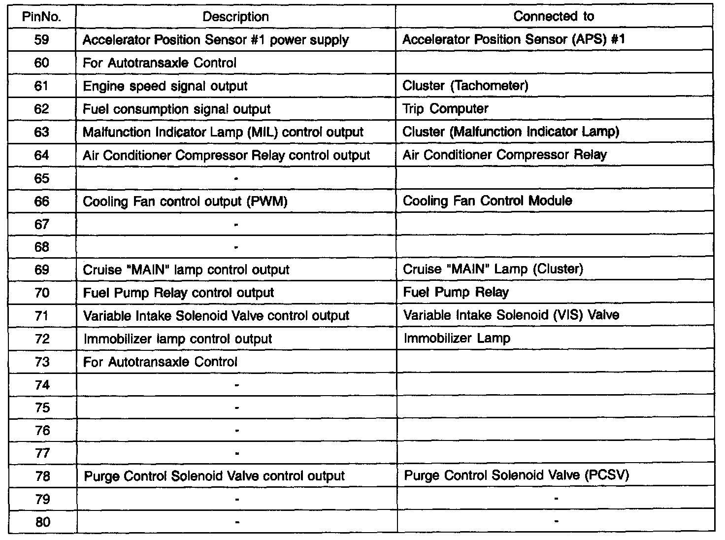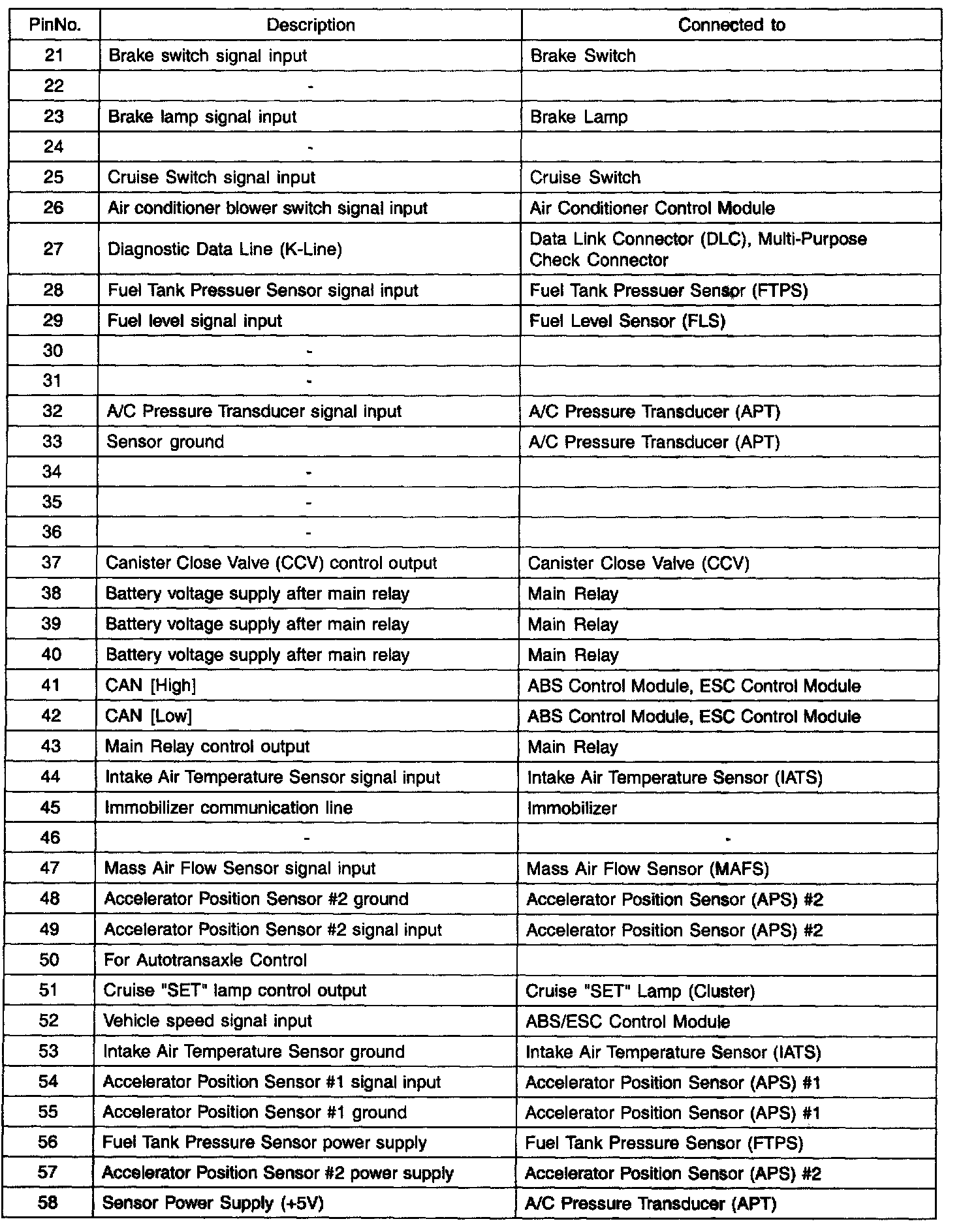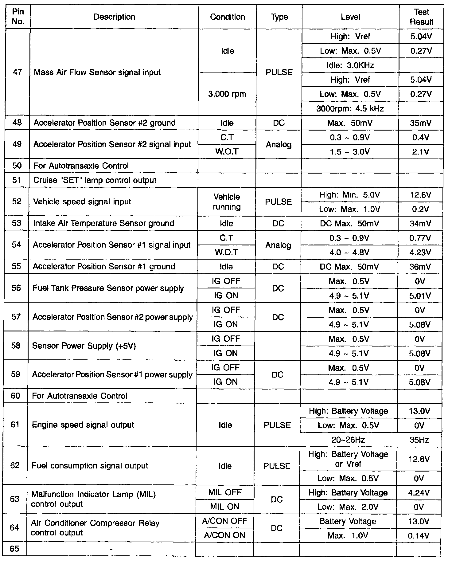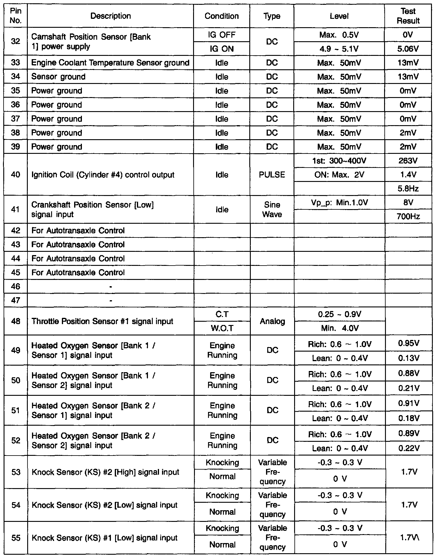 PCM Terminal Input/Output Signal - Connector (C01-1)