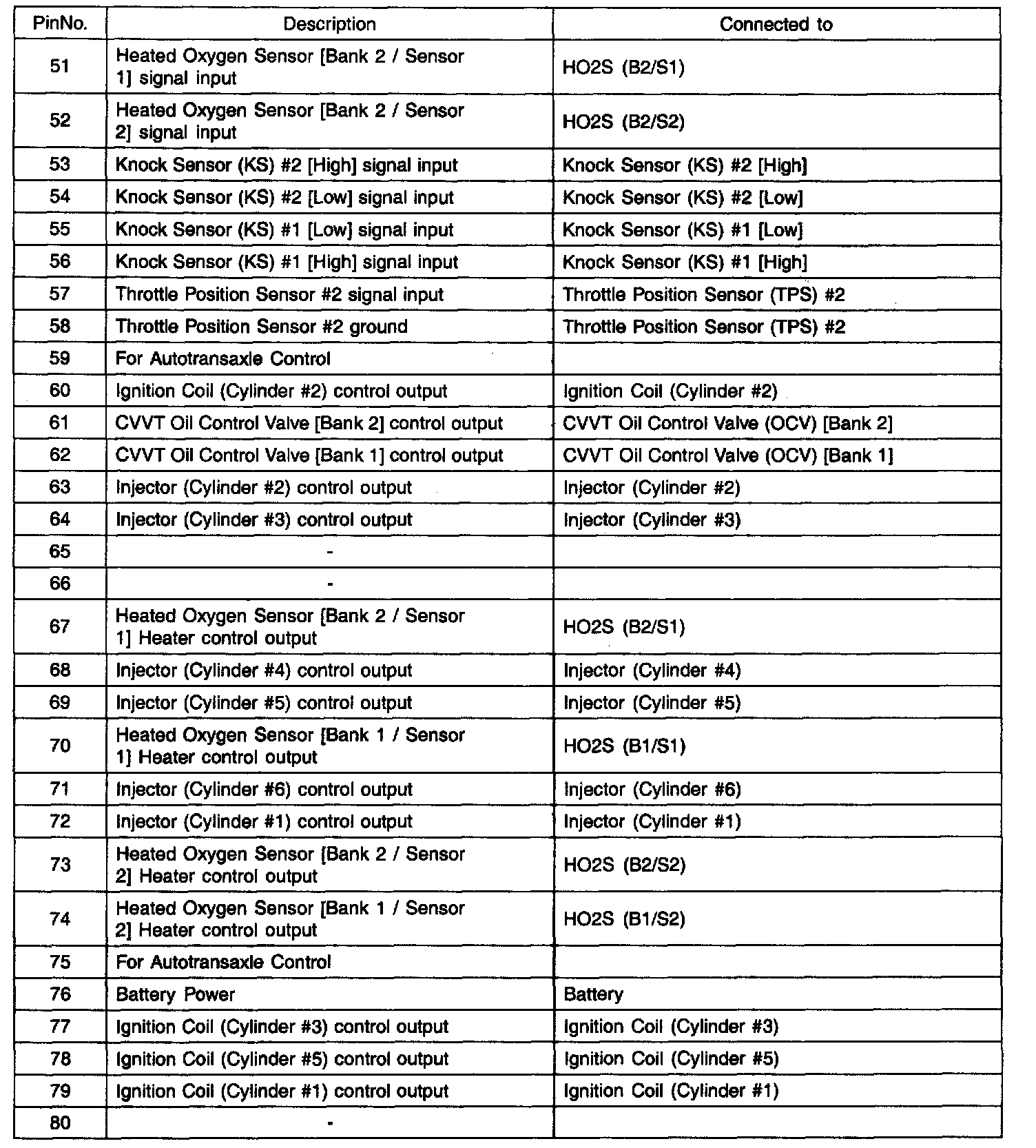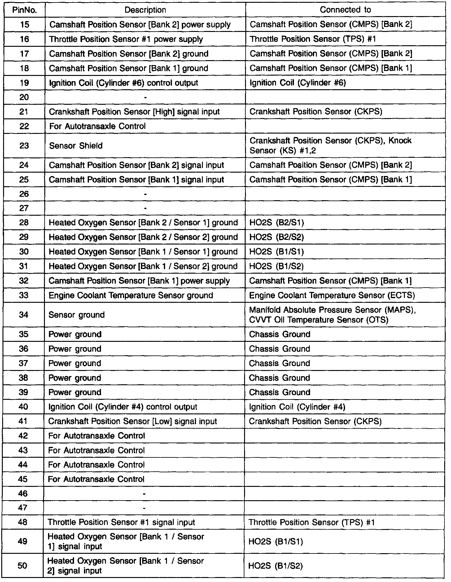 PCM Terminal Input/Output Signal - Connector (C01-2)