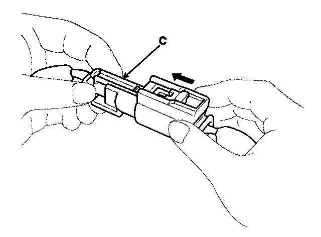 Hold both connector halves and press firmly until the projection (C) of the sleeve-side connector clicks to lock.