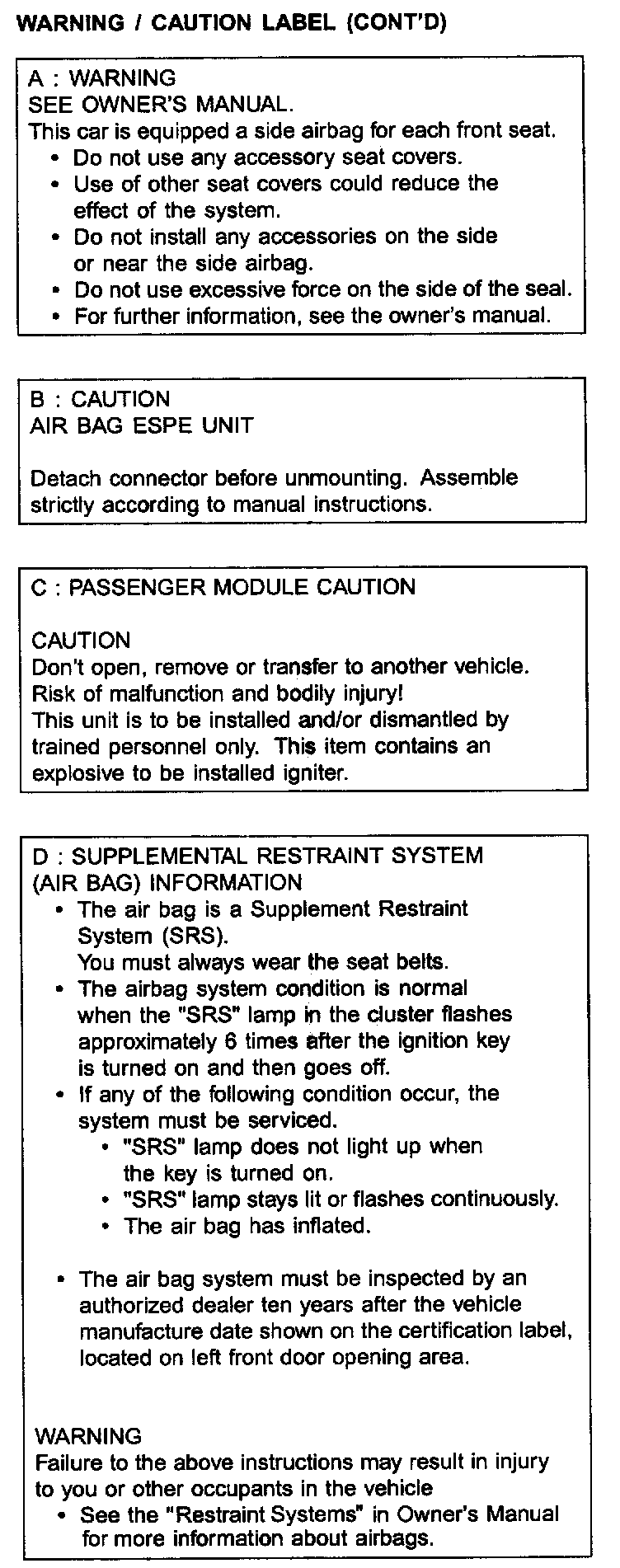 Warning / Caution Label (Continued):