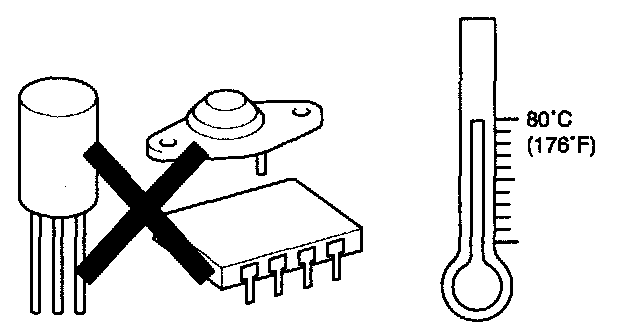 6. The electronic parts used in the computer, relays, etc. are readily damaged by heat. If there is a need for service operations that may cause the temperature to exceed 80 degrees C (176 degrees F), remove the electronic parts before hand.