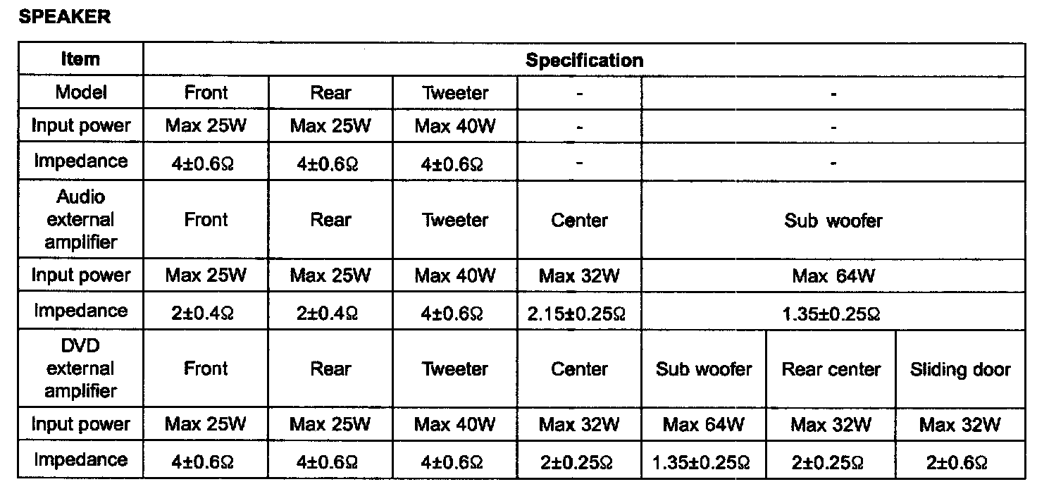 Specification - Speaker: