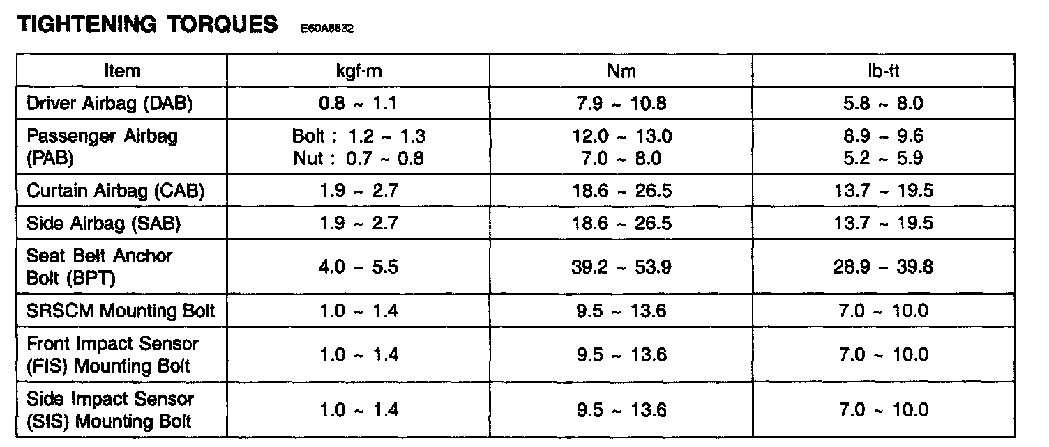 Tightening Torques: