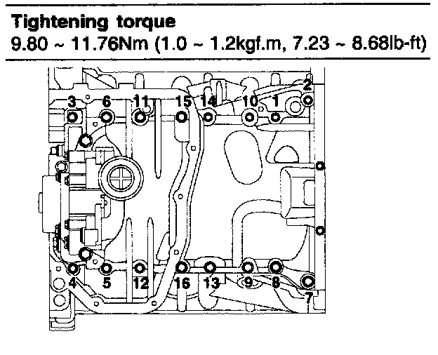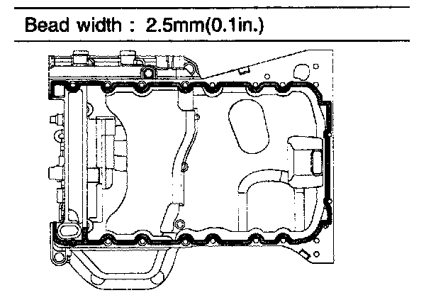 Before assembling the oil pan, the liquid sealant TB1217H should be applied on upper oil pan. The part must be assembled within 5 minutes after the sealant was applied.