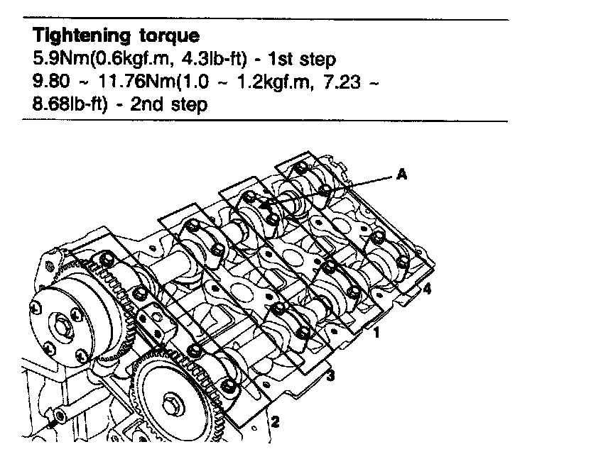 Camshaft Bearing CapInstall camshaft bearing caps (A).