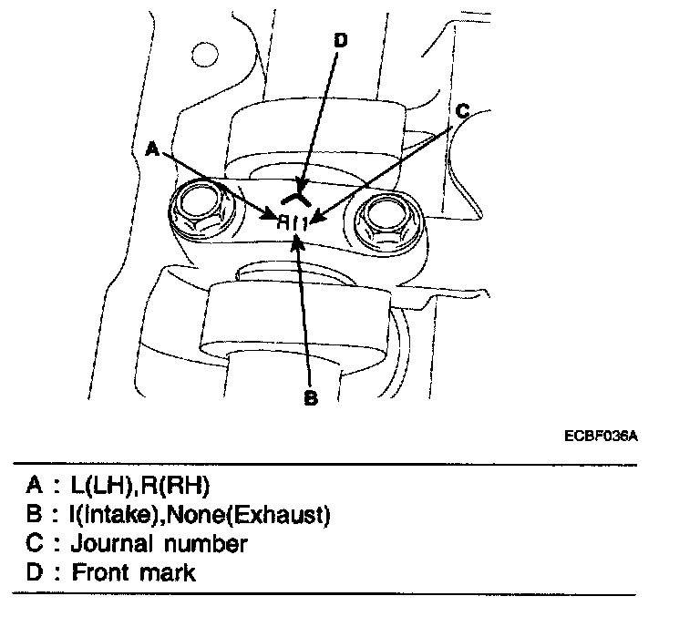 NOTE: Ensure that the cam bearing caps are installed in the correct location and direction. Refer to the table.
